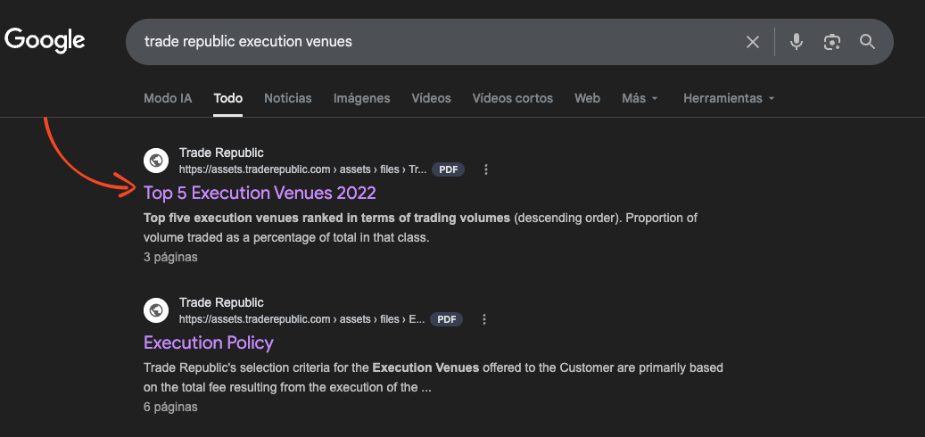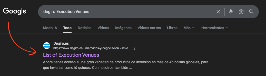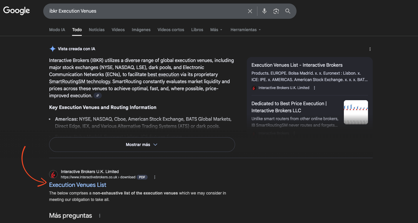 Pero vamos a ser fieles al “Execution venues”. Busca en el buscador de Google: