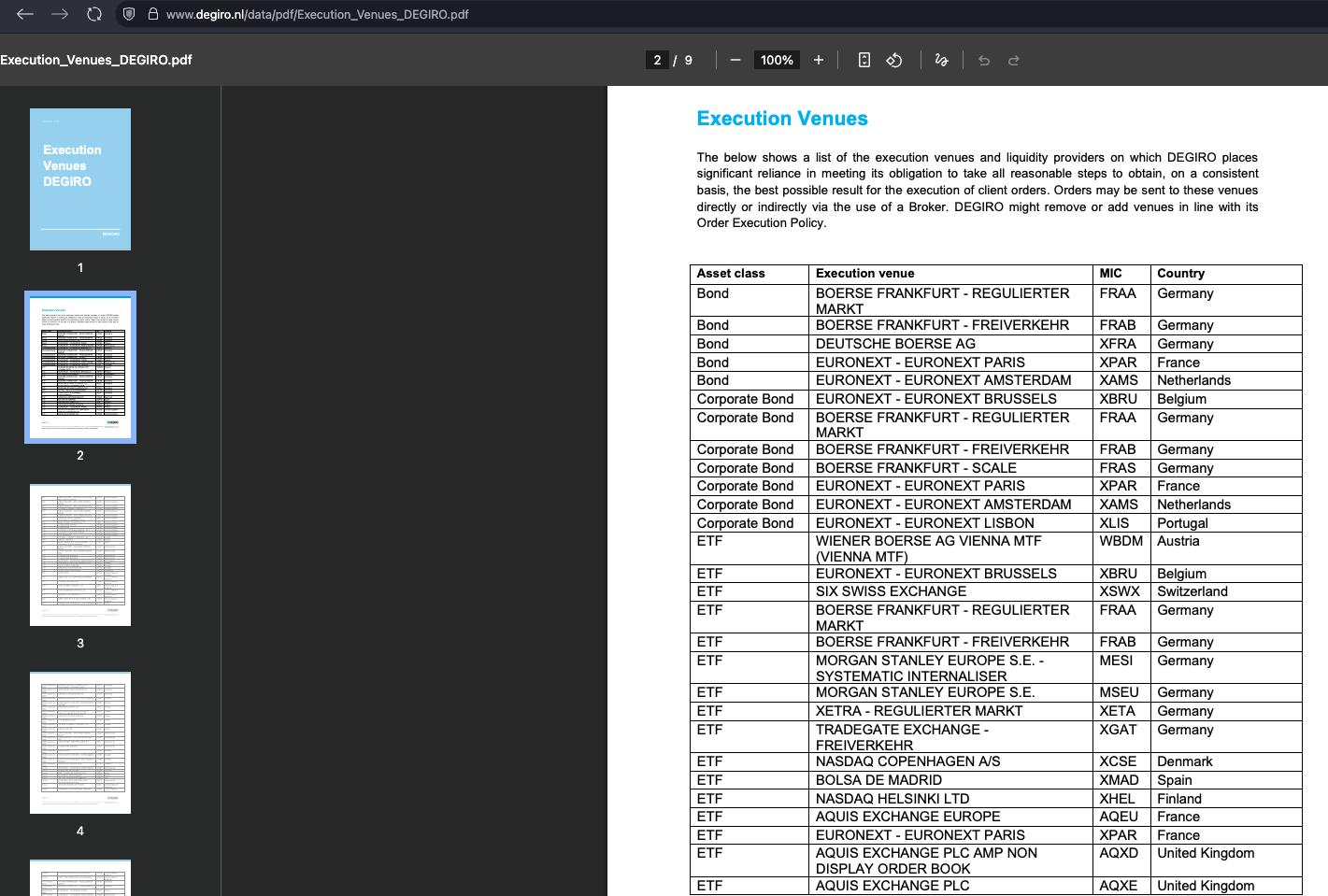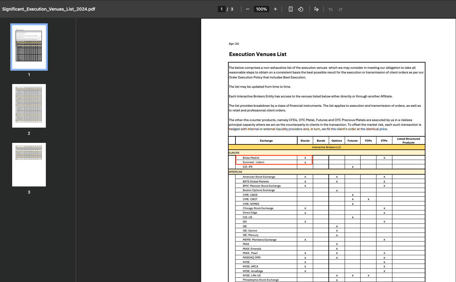 Ahora vamos a ver un ejemplo de las execution venues de los Brokers: