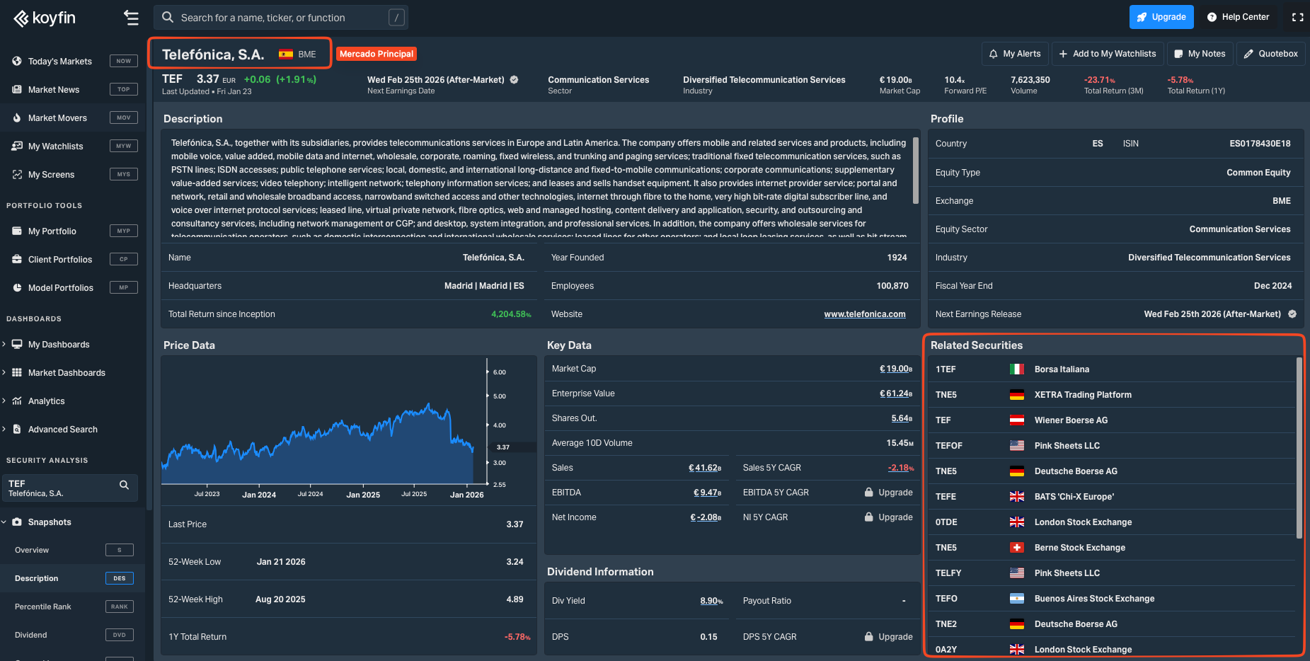- Telefonica, el mercado principal de Telefonica es BME - España