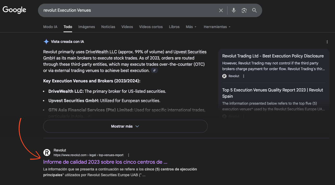 Vamos a ver dónde ejecuta Revolut las órdenes. Busca en el navegador: