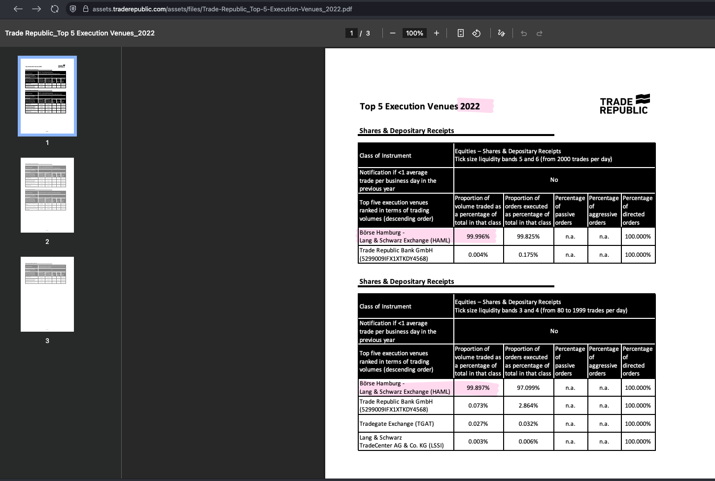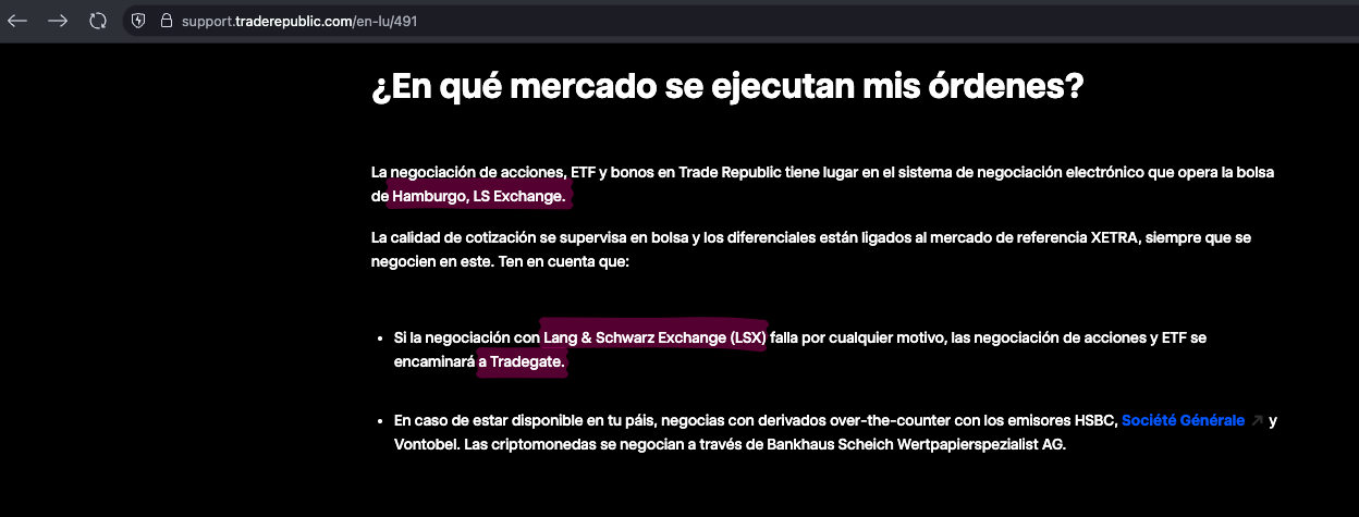 Que para casi todos los productos que ofrecen, la ejecución es de un 98% en - Börse Hamburg - Lang & Schwarz Exchange (HAML)