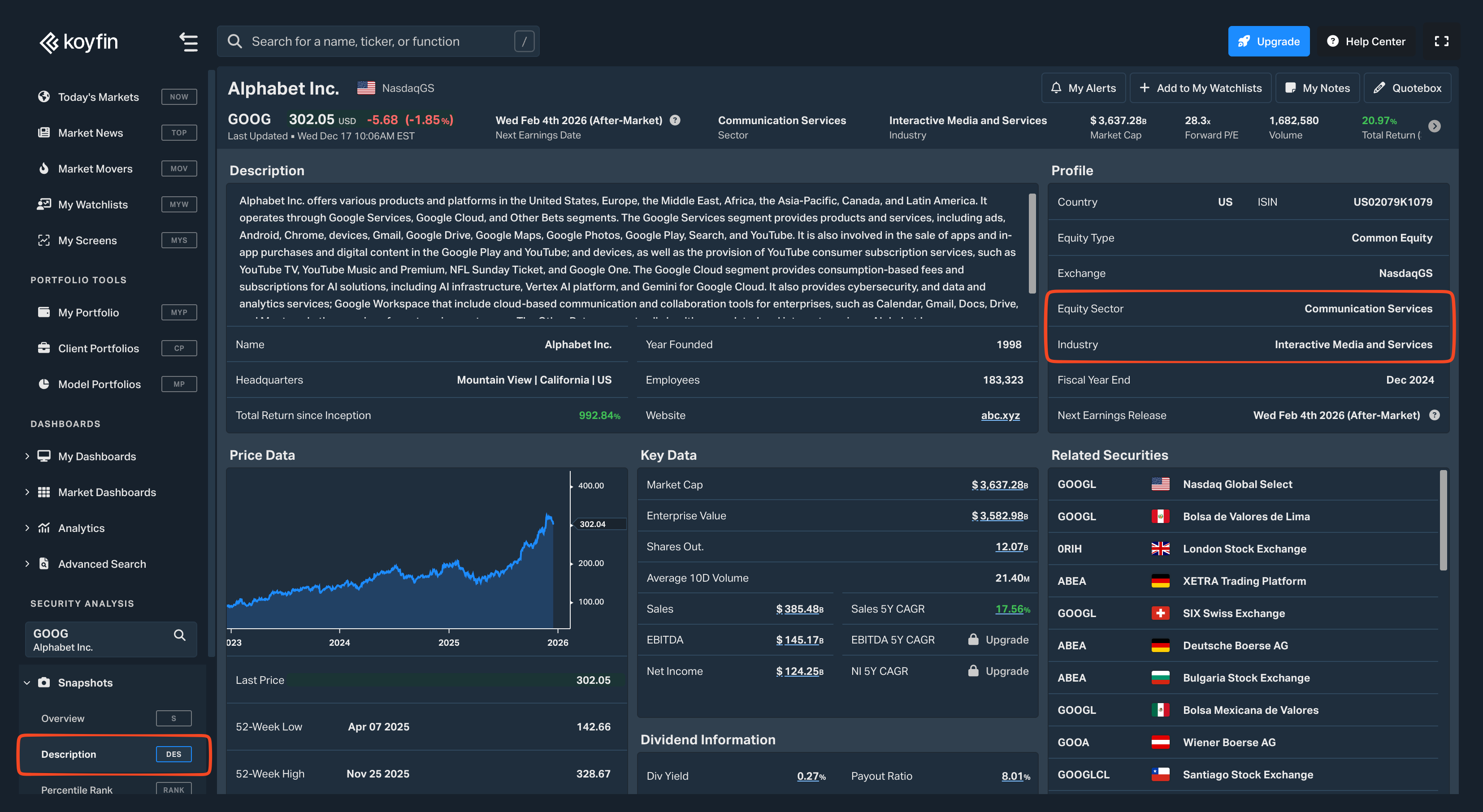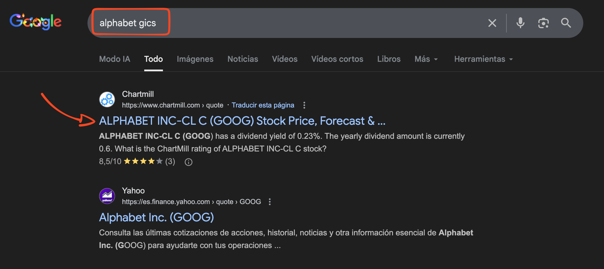 Puedes hacerlo de varias maneras, te pongo dos ejemplos, utilizando la empresa Alphabet (Ticker: GOOG o GOOGL):