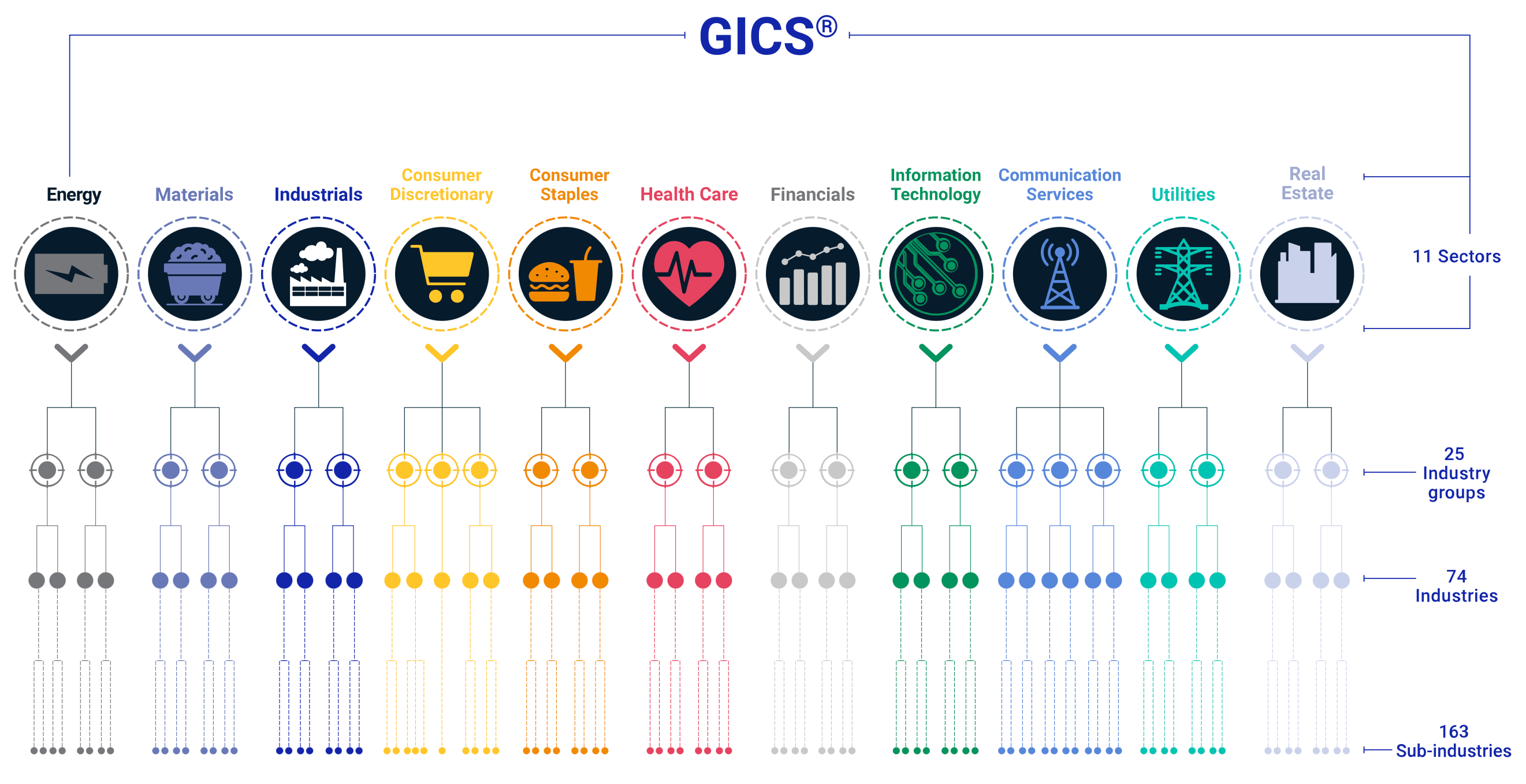 Para solucionar este problema y establecer un lenguaje común a nivel global, se creó el GICS (Global Industry Classification Standard). Este sistema permite clasificar cualquier empresa de forma coherente según la actividad económica que realmente genera la mayor parte de sus ingresos. (como norma general el 60%)